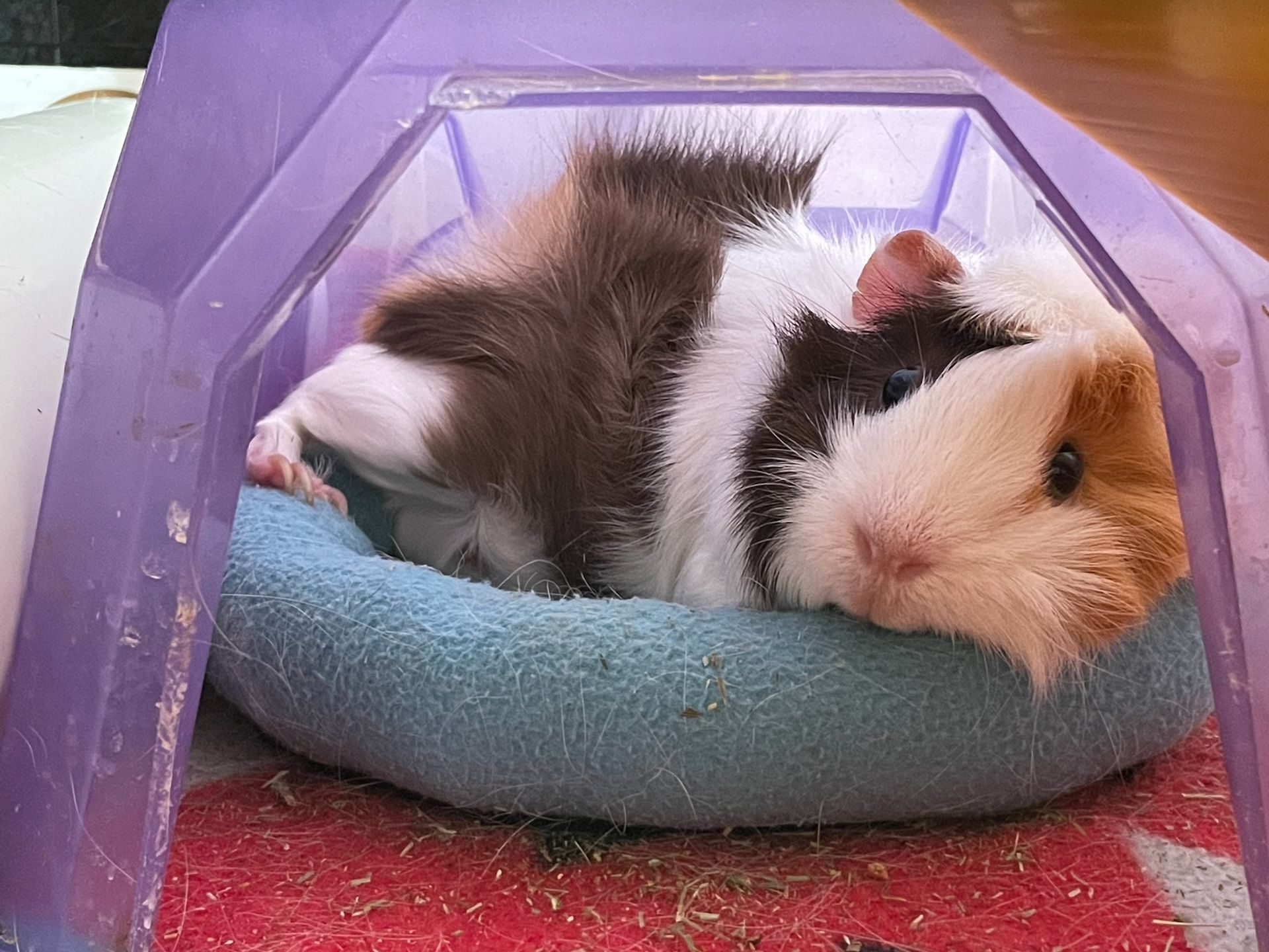 Olly, age 4, passed away February 8th, 2023. Olly was a very social and loving Guinea pig. Olly and her sister Tito were adopted together in 2018. They were inseparable and always loved sharing food. Olly loved snuggling up to her mommies' necks and taking long naps. She would immediately introduce herself to anyone who walked by. She loved being pet on the top of her head and under her chin. Her favorite foods were parsley and cilantro. Her mommies and her sister miss her so much. Rest in peace sweet girl.