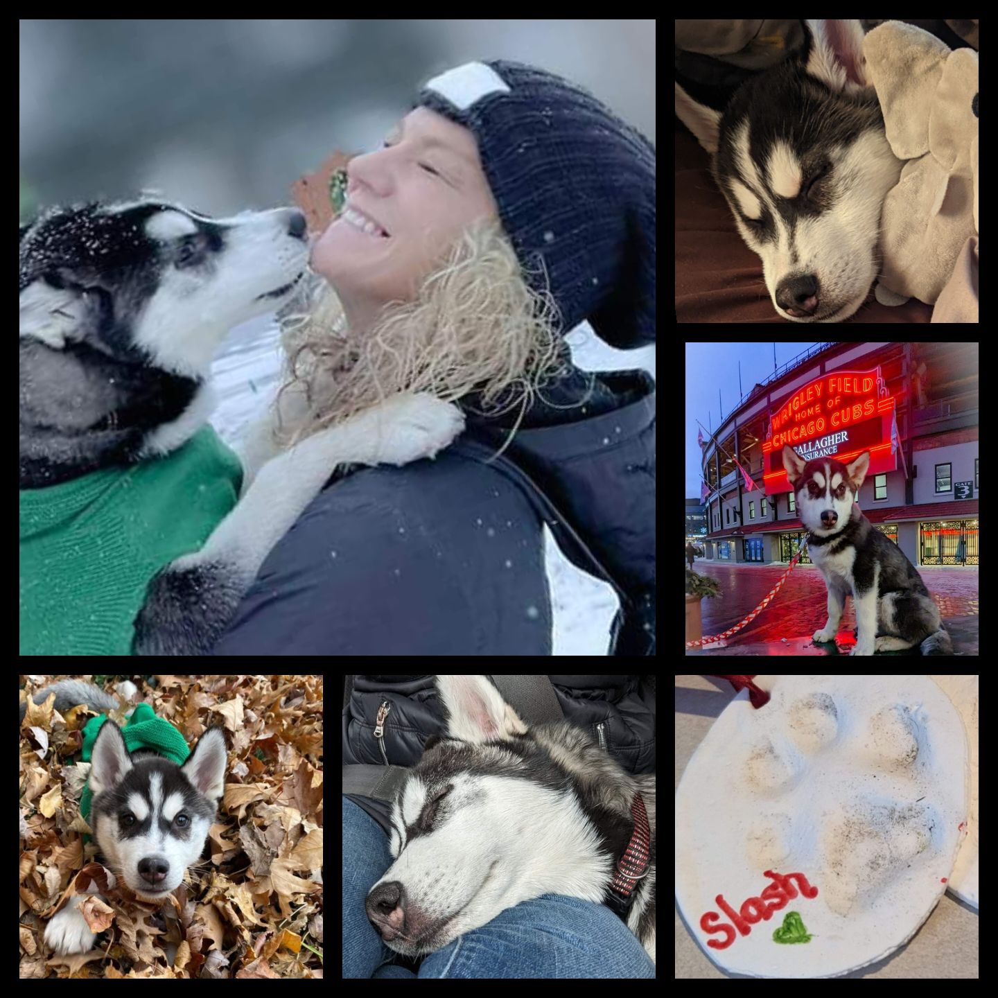 Being an NIU alumni, I always wanted a Husky, and last September – just when my heart needed it the most - my family brought home the most adorable, softest, perfectly marked puppy I have ever seen. Axl Rose our German Shepard was a big brother to our newest baby Slash. Unfortunately, after just nine short months our sweet baby boy’s life was cut short suddenly and tragically July 3rd, 2023. Moving to the country just over a month ago, Slash loved to run and explore. His playful personality never ceased, all he ever wanted to do was love and be loved. He never realized he had gotten a little bit too jump up into your arms. He was getting so close to howling the words “I love you”(I am certain him and BelleBelle would have had that down by his first birthday). He was finally learning that the chickens were friends, not food. He had so much life left to live, so many kisses to give, so many fields to explore, so many hours to “nuggle”.